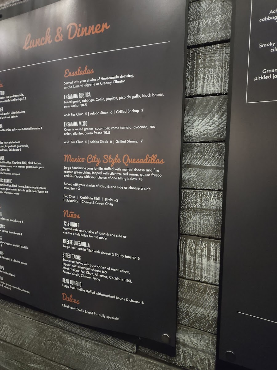 Seis Kitchen Menu